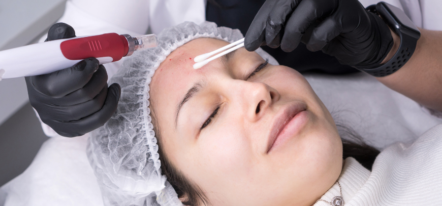 - Using the Derma pen device to create micro-injuries on the skins surface